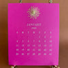 Hot Pink 2026 Calendar and Brass Easel - White Text with Starburst Engraved in Gold.