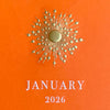 Orange 2026 Calendar and Brass Easel - White Text with Starburst Engraved in Gold.