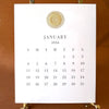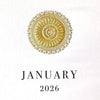 Bright White 2026 Calendar and Chrome Easel - Black Text with 12 Motifs Engraved in Gold.